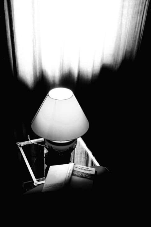 Mi piace l'idea, ma è vero anche che il titolo del libro è raggiungibile solo attraverso il titolo della foto. Un mio piccolo consiglio: riproverei la foto dando più spazio alla zona di luce al di sotto della lampada piuttosto che quella al di sopra, in modo da dare al libro il ruolo di protagonista che, a quanto ho capito, in questa foto gli spetta.