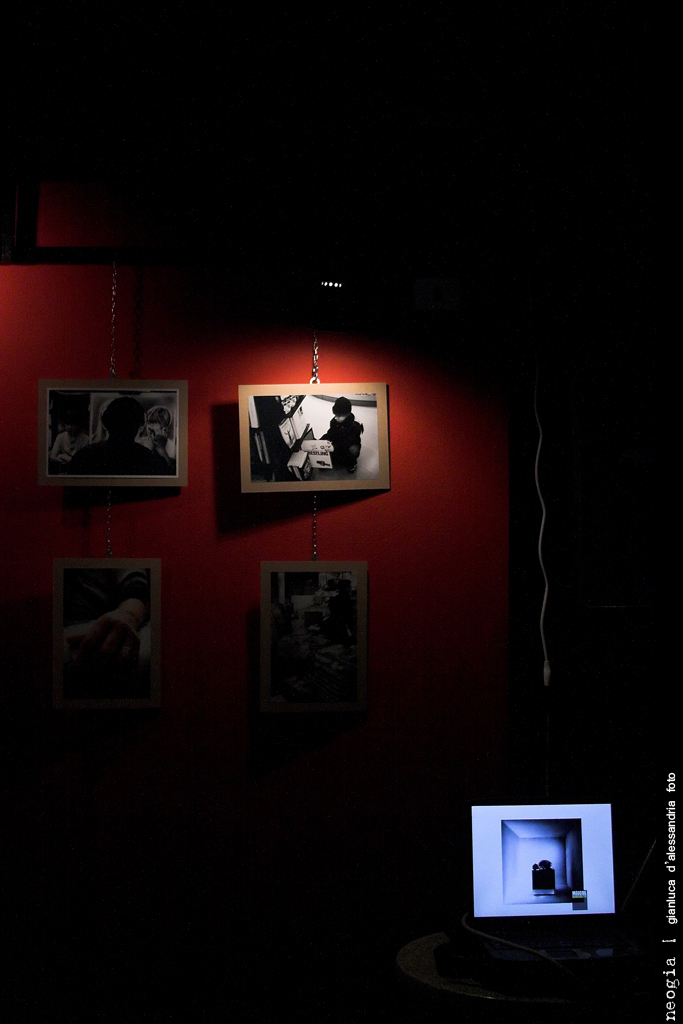 Esposizione semi-spot della 20D e 28-135 IS;le luci erano quelle della mostra fotografica ed il PC in basso era quello che comandava la proiezione sul muro delle immagini della mostra.