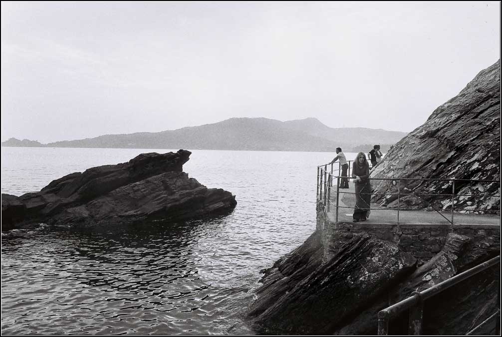 ... sul paesaggio non saprei cosa dirti ... il b&w mi sembra un pò piatto... c'è la ragazza alla balaustra che ti guarda ..... non capisco dove devo puntare l'attenzione.
