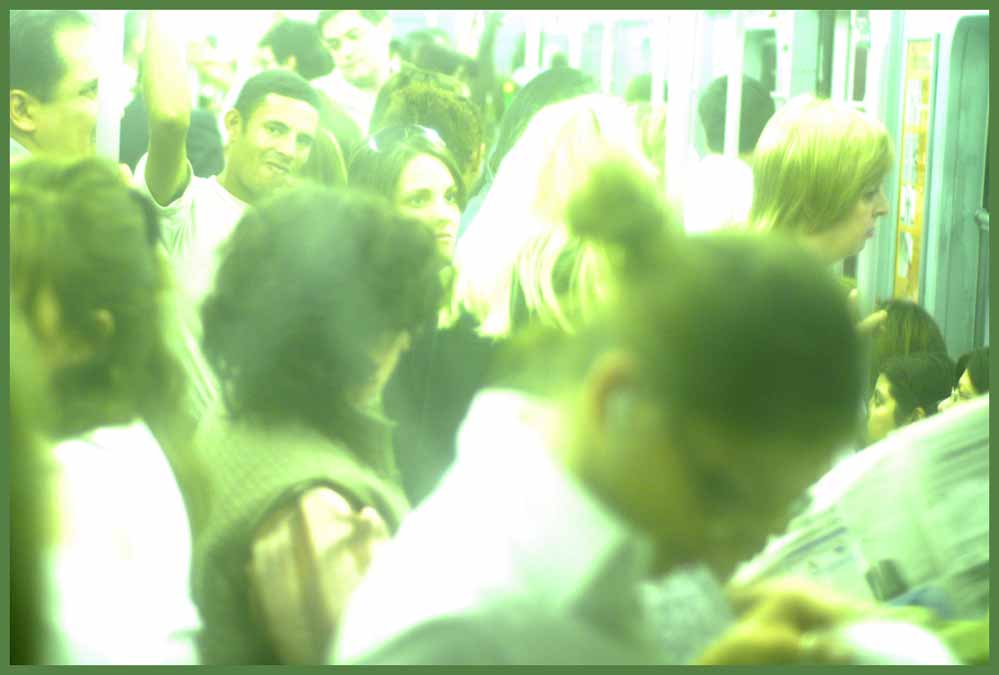 è una foto scattata dal vetro di un vagone di una metro,ho rubato un momento comune per tutti quelli che sono sull'altro vagone, loro nn sanno di essere fotografati, gli ho rubato una parte della loro vita quotidiana mentre loro sono presi dal loro scopo di raggiungere un luogo ... eppure c'è il punctum ... un'espressione che sembrerebbe nn indifferente alla mia non presenza .. sono curioso di sapere cosa vi faccia pensare questa foto