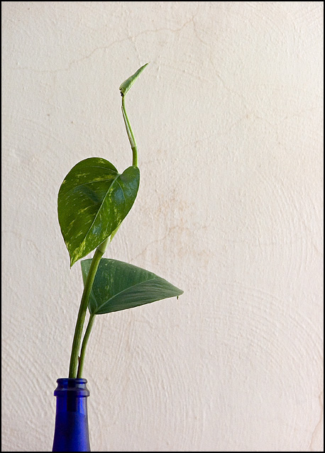 Qualche giorno prima avevo fatto qualche scatto in bn e con le foglie on posizione diverse, ma poi mi sono lasciata affascinare dai colori della bottiglia e delle foglie Smile