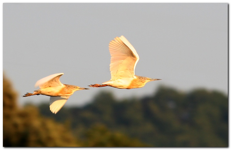 Il fatto che sia scattata al tramonto la rende speciale, grazie al fantastico colore assunto dai volatili, uno in scia all'altro. Forse potevano essere più nitidi? Boh, non so... so che la foto mi piace