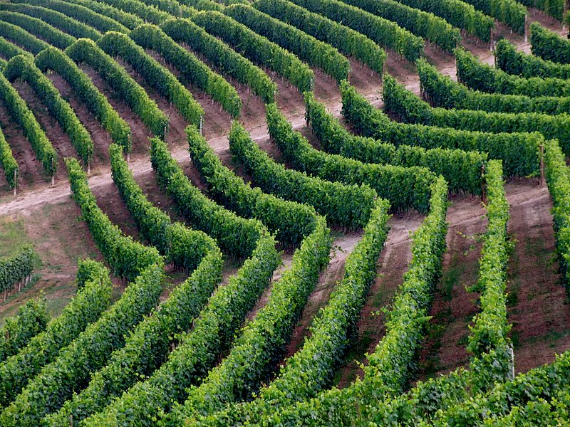 Una suggestiva immagine di vigneti ondulati sulle langhe.