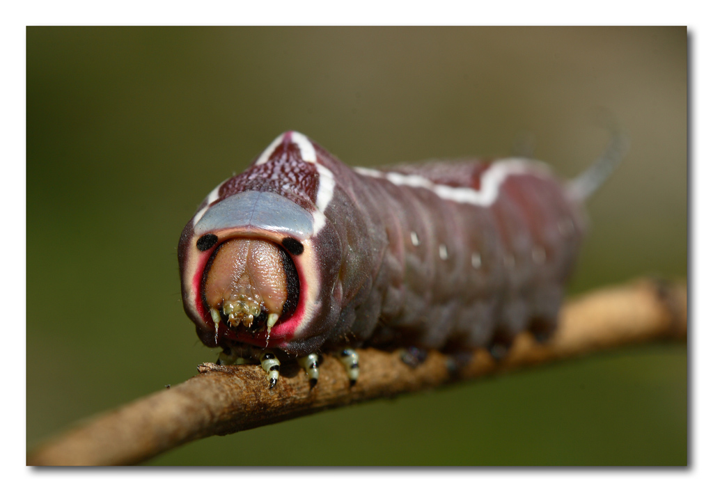 ...assomiglia molto al bruco della Cerura vinula, una falena notturna... ma il colore del corpo non dovrebbe essere tutto bruno ma per metà verde... Mmmmm