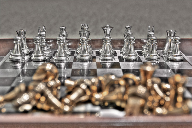 | io dico che è tutto giusto ma trovo che lo sfocato sia troppo figlio di photoshop...io vedo un pennello troppo forte sulla destra delle pedine sfocate e, soprattutto il bordo basso della scacchiera che è nitido per metà, il che mi fa pensare che se avessi usato la messa a fuoco selettiva e giocato + coi diaframmi avresti avuto un risultato "forse" più gradevole.Detto questo che è il mio personalissimo parere, come è andato il concorso? |