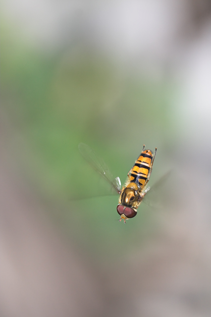 è proprio quell'insettino che scatta, volando, a destra e sinistra con una certa nevrosi! Perchè lo fanno? Secondo me per intimorire il possibile predatore se a questo si aggiunge il loro colore che le fa assomigliare a delle vespe! Mah