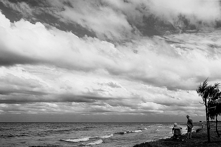 L'autore propone lo scatto in B/N scegliendo di sottolineare l'aspetto "emozionale" e umano della scena rispetto alla rappresentazione maggiormente realistica, e per questo meno poetica, del colore.