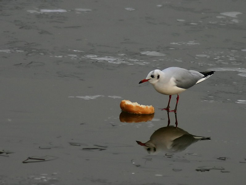 ah ecco il panino, ed ecco in lontanza anche il nero pennuto che si avvicina, bene-bene.....