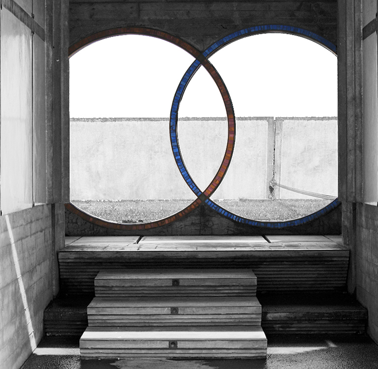 come inquadratura avrei tenuto la centralità dei due cerchi, tenendo la simmetrie delle due pareti
