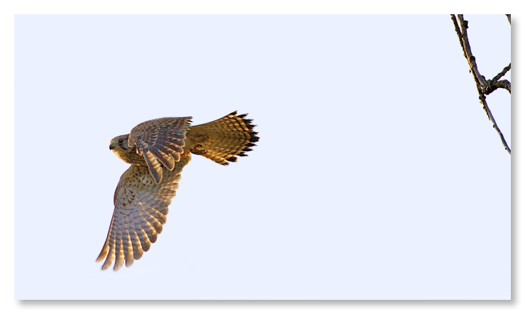 bella il tempo di scatto congela la fluidità e l'eleganza del movimento la luce è bellissima e l'unico appunto che penso si possa fare è che l'occhio è in ombra. solo che in questo caso non sminuisce la bellezza della foto, almeno per me. mi piace invece che il gheppio (giusto?) sembri guardare verso l'obiettivo