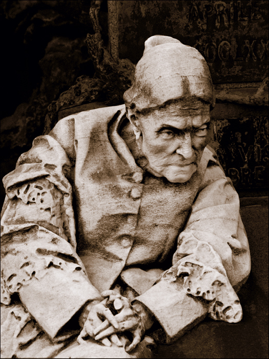 La foto l'ho scattata all'interno del cimitero monumentale, purtroppo non mi hanno fatto usare il trepiede (per quello bisogna chiedere un permesso! ) ed ho quindi usato gli alti iso, 1600 iso che nella fattispecie sulla mia fotocamera non brillano di certo per dinamica e rumore... non mi spiace invece quella sorta di grana che ne fuoriesce.