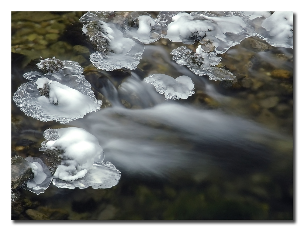 | In effetti il ghiaccio bellissimo sembra staccato dallo sfondo indistinto. |