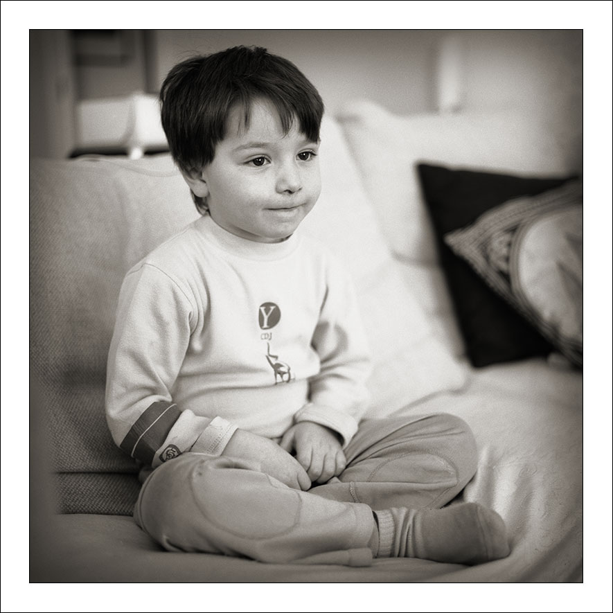 Ampia gamma tonale e taglio perfette.. due cose però: la spalla sinistra del bambino svanisce sul cuscino hai provato ad abbassare un po' il gamma? (Il contrasto no altrimenti addio alla bella gamma tonale..); cos'è quella cosa molto sfocata sulla verticale sinistra? Solo l'applicazione dell'effetto o un'oggetto?