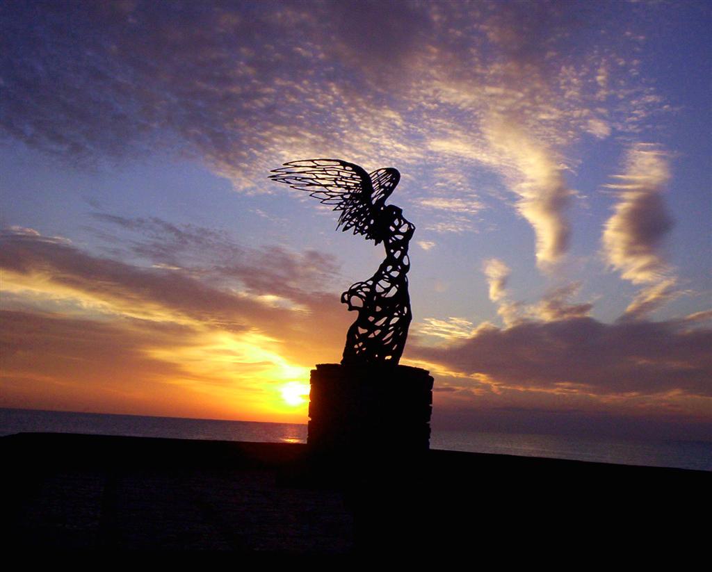 cielo spettacolare, statua suggestiva,ma non mi pare che la pendenza a destra accentui il pathos; la metterei dritta..