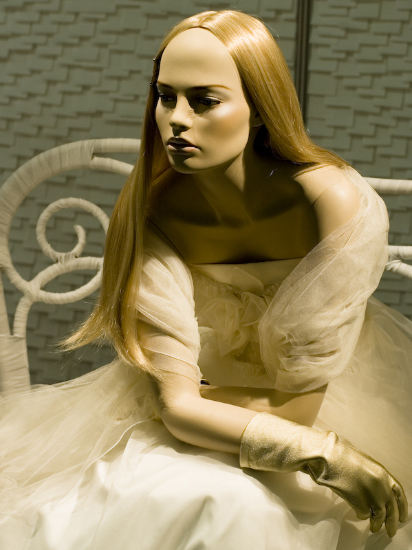 Ho fatto esperimenti del genere cercando di rendere l'immobilismo dei manichini il piu' realistici possibile ne ho un esempio anche se molto indietro nella mia galleria, in questa le luci della vetrina secondo me si sovrappongono a quelle della ripresa rendendo un po' troppo duro il tutto,