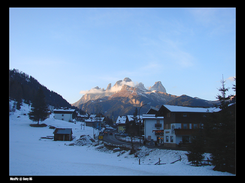 Vado spesso a sciare a Canazei, e questo posto preciso credo di conoscerlo (affitto gli sci appunto ad Alba di Canazei che e' proprio una frazione di Canazei - anche se i colori denotano esattamente l'alba in quelle zone). E il contrasto tra la "freddezza" di parte della foto e il "calore" di certi colori, rispecchiano esattamente le atmosfere di questi bellissimi posti!