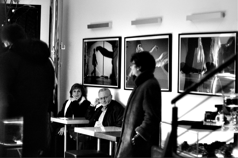 io la preferisco.... perchè ora la scena è quella di due persone, forse stanche, che da sedute guardano chi arriva... mi piace pensare sia una mostra, loro non la guardano. e le foto appese sono belle