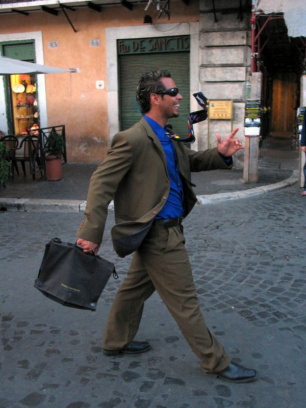 Io lo vedo spessissimo a P.zza Navona....è divertentissimo!!