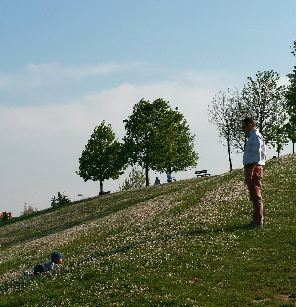 in realtà ho tagliato poco l'immagine originale per mantenere la parte alta della collina (quella dietro al papà) a metà inquadratura e i due soggetti equamente distanziati dal centro.