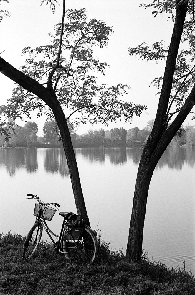 E' un'immagine che mi dà un'impressione di incompletezza: intendiamoci, non parlo di caratteristiche tecniche, parlo di significati. E' come se mancasse qualcosa... forse la presenza delle due robinie richiede la presenza di qualcosa di più di una bici da sola?