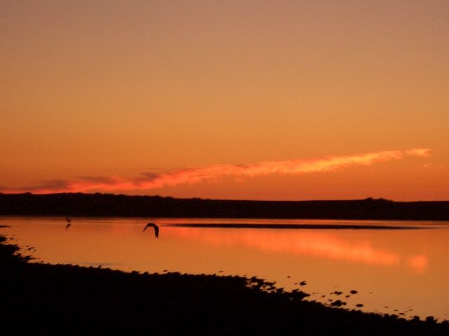 Ti faccio presente che non è a fuoco, basta guardare i contorni del paesaggio; se vogliamo manca un intento compositivo: la macchia a forma di uccello che vedo sulla sinistra poteva forse essere valorizzata maggiormente. Sono sicuro che riflettendo cinque minuti avresti sicuramente ottenuto qualcosa di meglio. Da notare anche che la parte inferiore del fotogramma, essendo costituita da un nero pieno, non è di nessun valore aggiunto, a mio modo di vedere poteva anche essere (del tutto o parzialmente) eliminata. Analogo discorso potrebbe farsi per il cielo, un po' troppo "povero" di nuvole in alto.