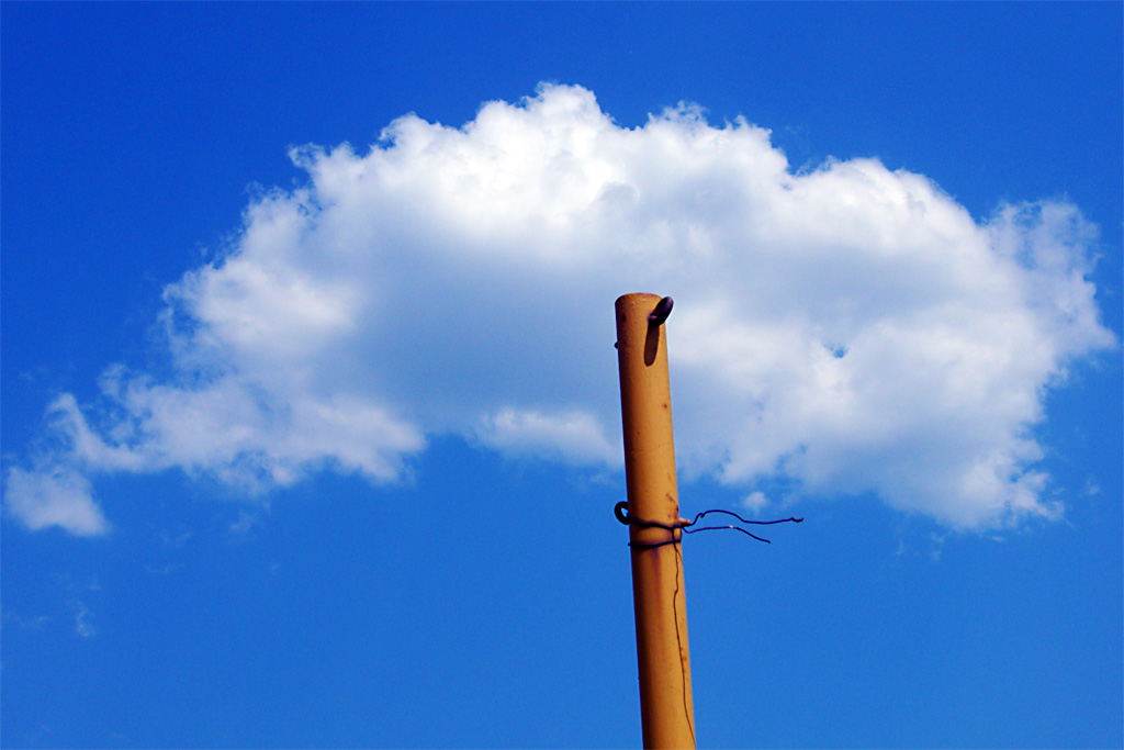 ma come in ogni foto non credo ci sia molto da capire...ho immortalato quell'attimo perchè mi è piaciuta quella visione...non so esattamente perchè, forse il cielo blu, forse la nuvola..così leggere e vaporosa o forse il paletto..completamente opposto alla nuvola, pesante e rigido, quasi di disturbo!