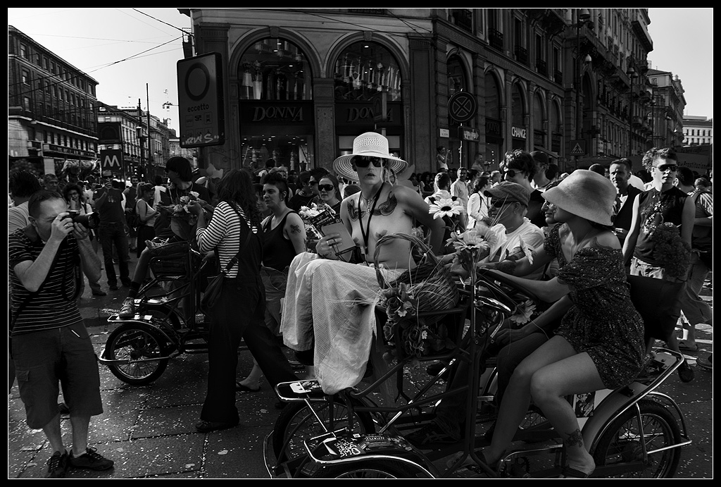 E' confusionaria , piena di gente espressioni e caos ... Bellissima la ragazza che guarda in camera e il fotografo che la inquadra . Insomma una foto piena di elementi che però nella fattispecie non disturbano affatto... In fin dei conti è una street fatta al gay pride , quindi è una testimonianza dell'atmosfera che c'era . Mi stupisco anzi che ci sia un commento solo , ti garantisco che questo scatto merita più attenzione ...