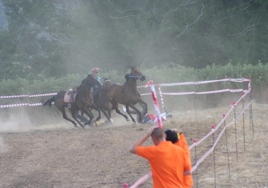 Io avrei cercato di focalizzare di più l'attenzione sul soggetto della foto, cioè sulla caduta del fantino: avrei quindi stretto di più sui cavalli sicuramente cercando di evitare i 2 tizi vestiti di arancio che sono un pugno negli occhi  |