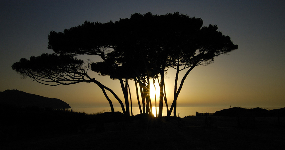 Un gran bel controluce. Ben riuscita la corona di "raggi" di sole intorno al tronco.