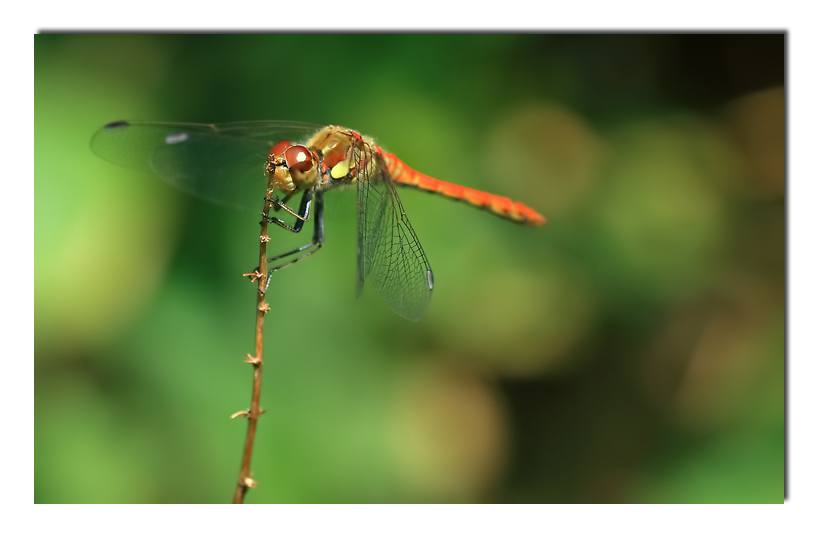 Bella composizione, precisa la maf sulla testa della libellula. Sfondo super Ok!