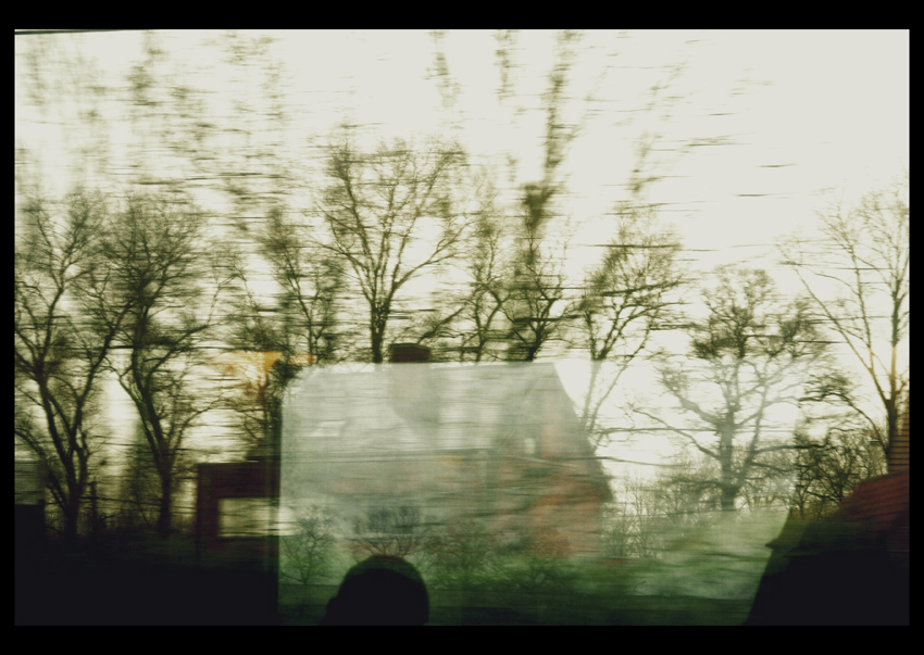 ...L'immagine mi fa pensare al viaggio...a quei paesaggi visti di sfuggita e mancanti di particolari...confusi dai riflessi e forse anche dal sonno...la mattina io viaggio...pendolarismo ferroviario...ed ogni tanto mi accorgo anche di quello che c'è fuori...