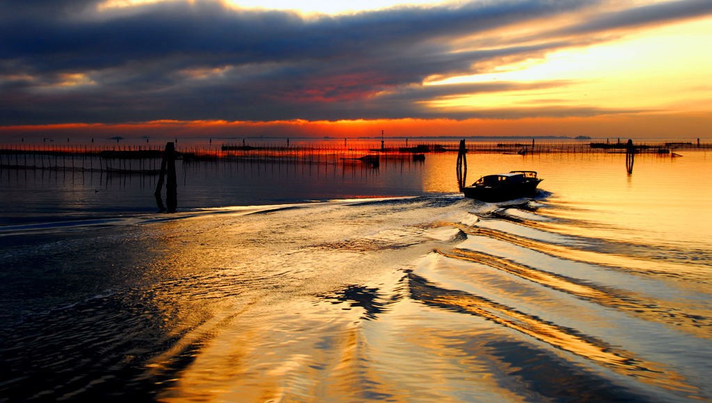 Assolutamente favolosa! Un bellissimo tramonto ripreso in modo sublime...composizione ben studiata ed equilibrata, colori intensi ed infuocati, controluce davvero riuscito, nitidezza eccellente, riflessi eccezionali...ed un'atmosfera da favola!