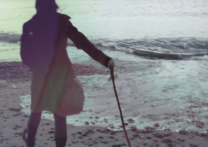 Una passeggiata lungo la spiaggia, mentre si cammina persi tra i pensieri, con un bastone si cerca di colpire delle pietre, e di farle volare via lontano, come si vorrebbe far volare via tanti pensieri.. o magari ci si ferma a scrivere qualcosa sulla sabbia bagnata, espressione di qualche pensiero che poi l'acqua arriva a cancellare..