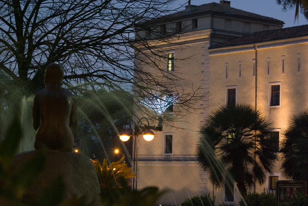 La foto quanto test, mi piace anche perchè si individuano i vari piani di messa a fuoco, le luci crepuscolari, quelle delle luminarie e le luci di illuminazione.