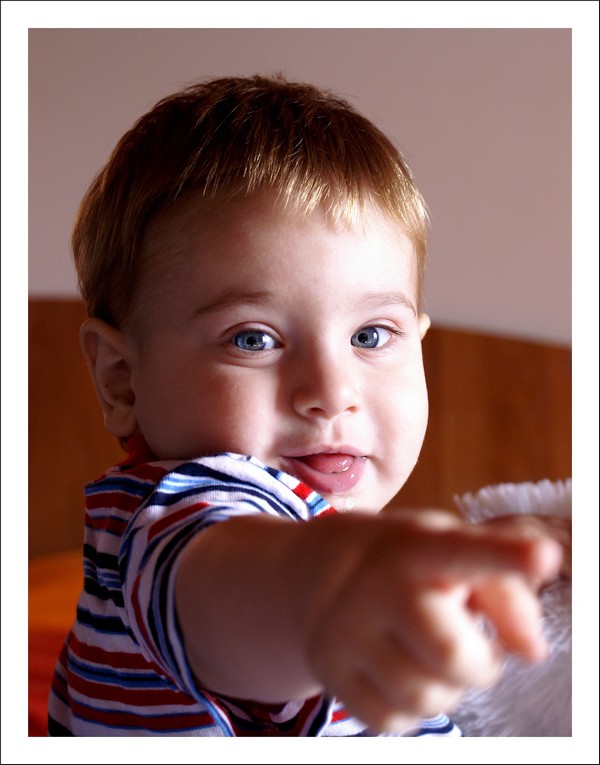Bella l'espressione del bimbo e buona l'esposizione, con le alte luci tenute al limite della bruciatura. Sfondo sfuocato quanto basta per far risaltare il soggetto. Se fosse facile fotografare i bambini, ti direi che la mano è troppo fuori fuoco, ma non si può aver tutto...