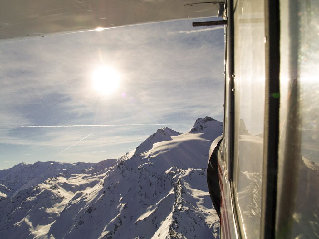 tentando di atterrare sul ghiacciaio del Ruithor... ma il vento forte e turbolento ce lo sconsiglia