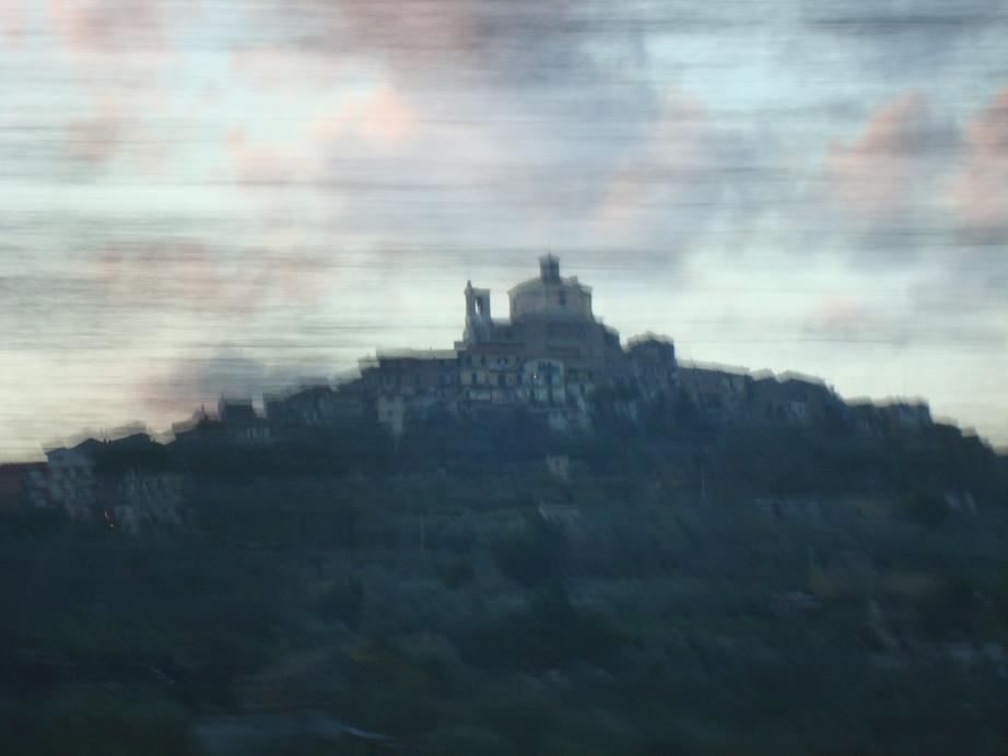 Un paesino carino, arroccato simpaticamente su una collinetta, calmo. Se la si continua a guardare però, non si vede un paesino calmo... ma fermo, immobile, morto. Un paesino disabitato, abbandonato alla furia del vento (degli eventi) che alla fine lo ha completamente svuotato. Il tutto è ben reso da questo effetto di smaterializzazione che il vento porta sulla città. é il vento che inghiotte la città.