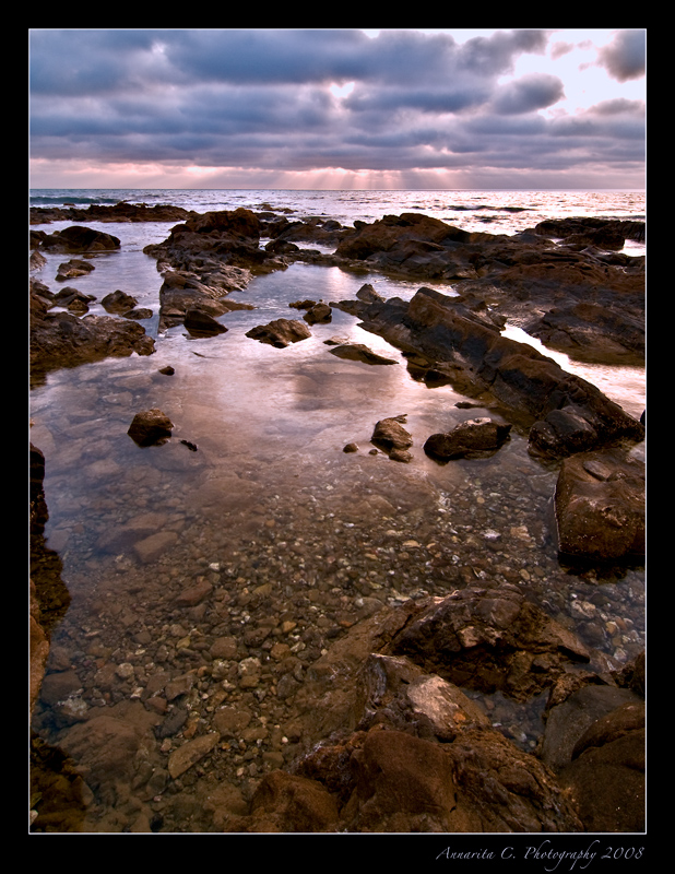 Secondo me questo scatto ha quasi tutto...un primo piano interessante nei sassolini nitidissimi, una luce perfetta, i raggi di sole che scendono sul mare, nuvole tempestose...per essere perfetta le manca solo di essere stampata in formato gigante ed appesa nel punto migliore della casa.