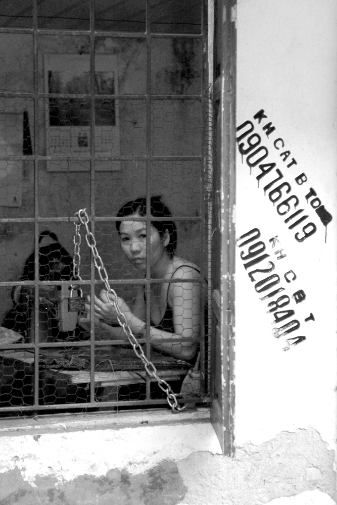 Da sola racconta una storia, una condizione e uno stato d'animo. Ottima idea aver compreso nell'immagine le scritte al lato della finestra, perfetto lo sguardo della ragazza che si accorge del fotografo. Difficile dire dalla sua espressione quale sia lo stato d'animo. Ciligina sulla torta il calendario che si scorge sul muro e ci da l'idea dei giorni che passano in un lavoro monotono e con scarse soddisfazioni.