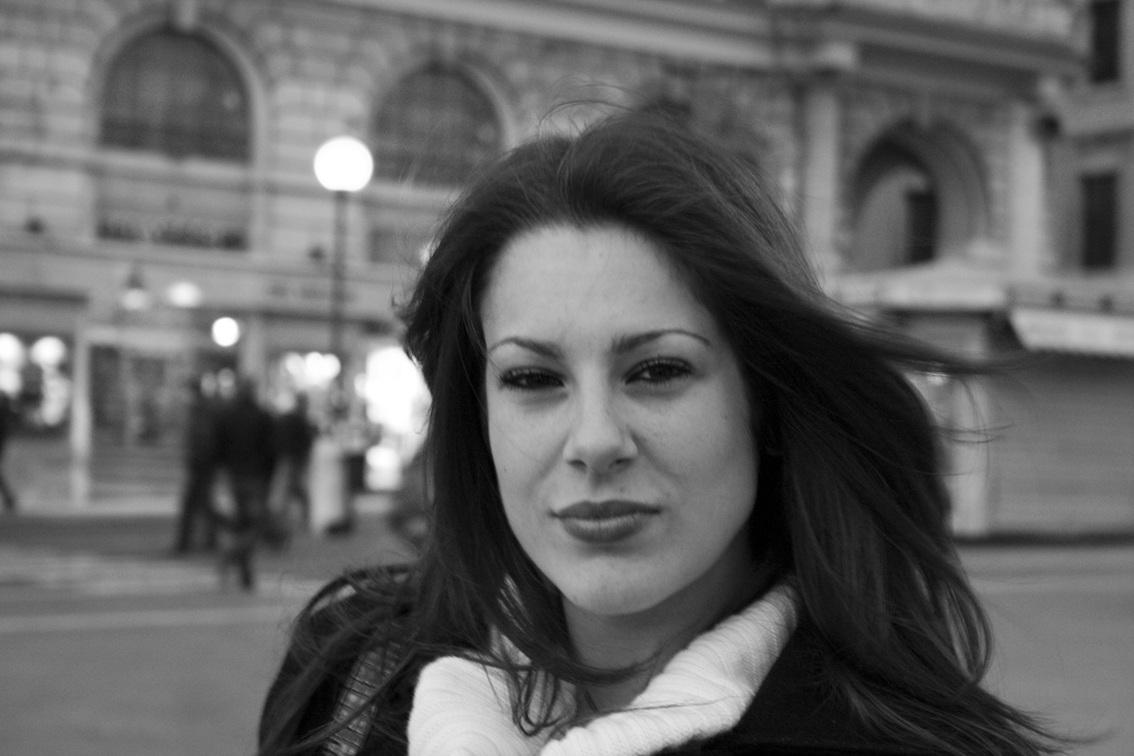 L'espressione è vero è un po' corrucciata ma è quasi naturale per lei ( stiamo insieme da 6 anni quindi la conosco bene); in più credo che su questa abbia influito anche il vento di L'Aquila che non è proprio una brezza primaverile...