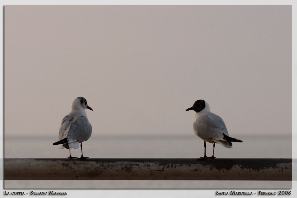 Complimenti un immagine bella e delicata, bello il gioco delle linee di demarcazione del cielo, mare e del muretto dove poggiano i dolci pennuti.