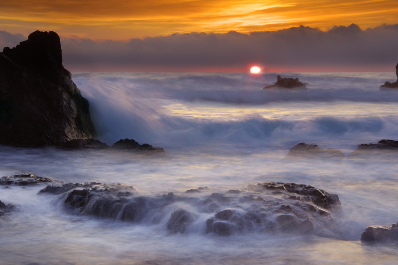 Carpe diem: l'attimo colto è quello dell'infrangersi dell'onda sugli scogli.
