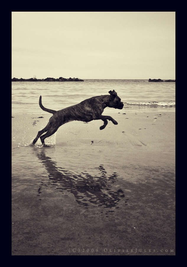 Proverei a schiarire di poco l'onda davanti al cane, e anche gli scogli, giusto per differenziare i toni.