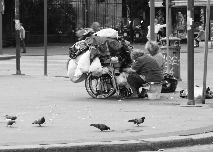 Così come i piccioni carpiscono dal pavimento della piazza alcuni bocconi di pane tralasciato da qualcuno, così anche le anziane signore per vivere fanno raccolta di stracci e quant'altro riescono a trovare per strada.