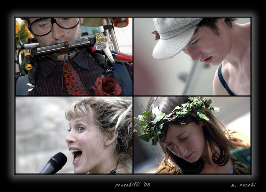 Perdona l'ignoranza, ma cosa hai documentato? Festival del teatro di strada, sbaglio? Sono immagini tecnicamente tutte impeccabili (tranne la 06), ma le inquadrature molto ristrette, mentre esaltano i volti e le espressioni (talvolta tuttavia un poco ripetitivi), non ci permettono di oreintarci sull'evento, a meno che non si sappia di che si tratta preventivamente. Le cornici sono un po' invadenti, ma non dispiacciono.