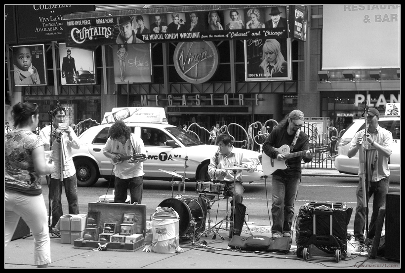 a me personalmente piace sempre un sacco riprendere i musicisti e gli artisti in generale...peccato la persona a sinistra un po tagliata...ma forse rende la foto più street Smile
