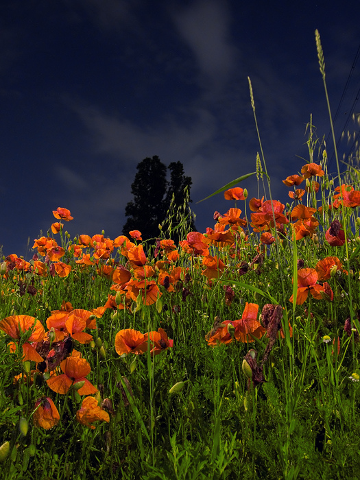 Mi piace tantissimo il contrasto del rosso dei papaveri con il cielo blu notte
