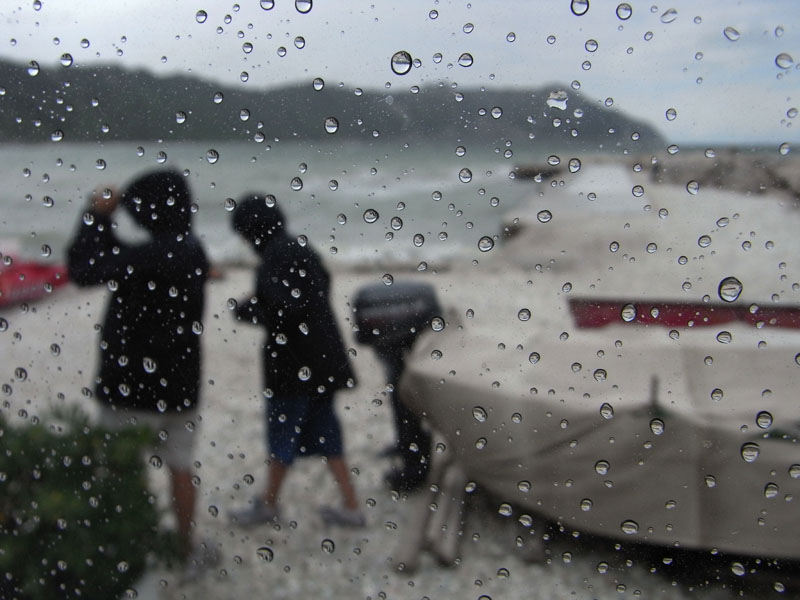Portonovo, tempo impietoso, ci rifugiamo insieme a MescoDesign e Nonno dentro un bar ristorante sulla spiaggia per prendere qualcosa da mangiare... sul vetro ci sono tante gocce su cui si riflettono due coraggiosi all'esterno... ecco una analogia ripetuta quasi all'infinito, perfetta per uno scatto street... che ne dite?!?