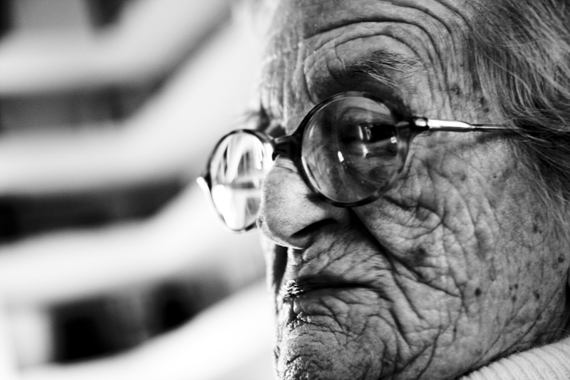 sono questi i commenti che cerco e sono d'accordo per il fuoco e lo sfondo confuso, dubbioso sull'inquadratura con il mento tagliato ma, in un certo modo, il "confuso tormento" di una persona molto anziana era quello che cercavo