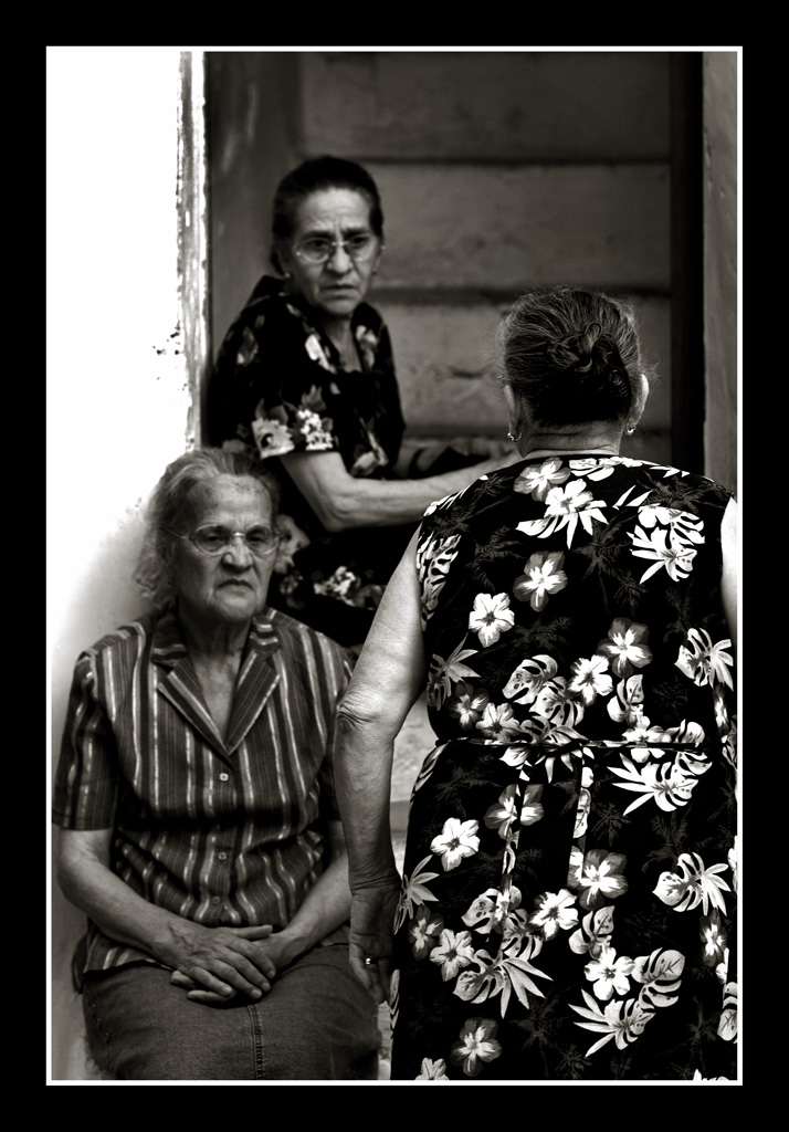 Ha quasi il sapore di una street questo scatto che colpisce per quel balletto di fiori tra i vestiti delle due signore che paiono specularsi anche grazie ad un gioco di sguardi che si fanno l’uno il reciproco dell’altro (anche se non lo vediamo riusciamo a scorgerlo lo sguardo della signora di spalle).